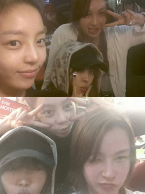 공개된 사진 속에는 배 단장과 그룹 '카라'의 구하라, '브라운아이드걸스'의 나르샤 모습이 담겨 있다. 이들은 손으로 브이(V)를 그리거나 윙크를 하는 등 재미있는 포즈를 취하고 있다.