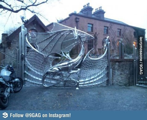 공개된 '드래곤이 지키는 저택' 사진에는 한 저택 앞에 엄청난 크기의 드래곤 형상 조각 모습이 담겨 있다.