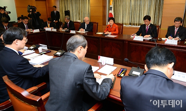 박근혜 대통령 당선인이 29일 오후 서울 종로구 통의동 인수위 회의실에서 열린 법질서사회안전분과 업무보고에 참석해 모두발언을 하고 있다.