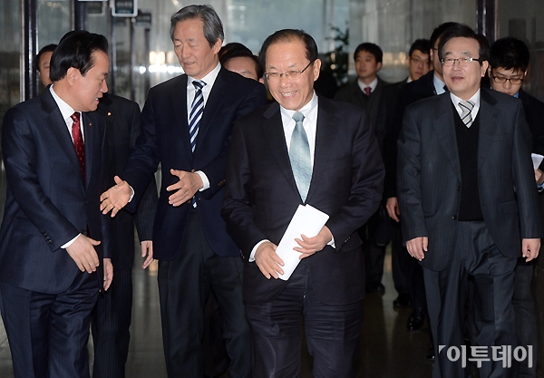 황우여 새누리당 대표 등 최고위원들이 30일 오전 국회에서 열린 최고중진연석회의에 참석하고 있다.