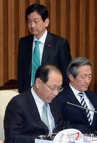 새누리당 최고중진연석회의가 30일 오전 국회에서 열린 가운데 진영 인수위 부위원장이 회의에 참석하고 있다.