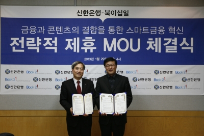 신한은행은 출판업체 북이십일(Book21)과 금융과 콘텐츠의 결합을 통한 스마트금융 혁신 전략적 제휴 양해각서를 체결했다고 30일 밝혔다.