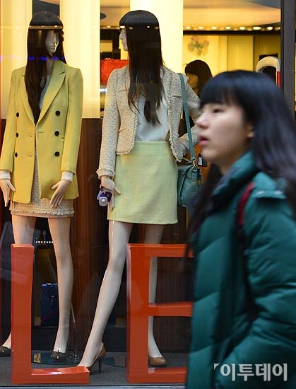전국적으로 포근한 날씨를 보인 30일 오후 서울 명동 한 의류매장의 마네킹들이 화사한 봄옷으로 갈아입고 있다.