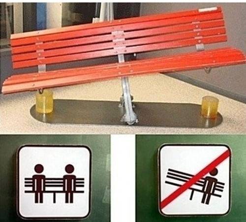 특히 가운데만 다리가 있어 두 사람이 양쪽에 앉아 균형을 이뤄야 편하게 앉을 수 있다. 또한 한쪽이 무거워도 기울어져 불편한 모습이 연출될 수 밖에 없는 상황이다.