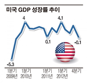 지난해 10월 미국 동부 해안을 강타한 허리케인 샌디 여파와 재정절벽에 대한 우려가 겹친 것이 미국 경제가 3년 반만에 처음으로 역성장한 배경이라는 평가다.