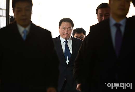[포토]최태원 SK 회장, 10년 만에 또 다시 구속