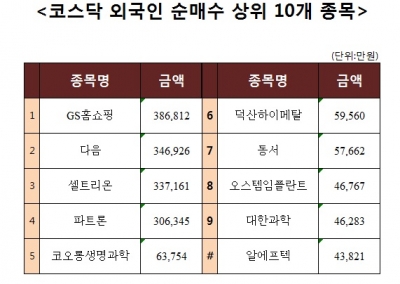 [코스닥 외국인 순매수 상위 10개 종목]