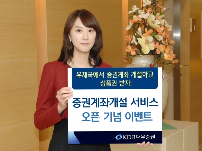 KDB대우증권이 우체국과 업무제휴를 맺고 ‘증권계좌개설 서비스 오픈 기념’ 이벤트를 실시한다고 4일 밝혔다.