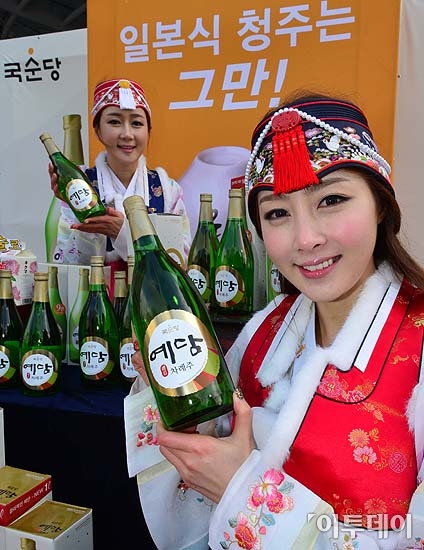 전통주 전문기업 국순당이 4일 오전 서울 청계광장에서 설을 맞아 바른 차례문화 캠페인의 일환으로 우리 전통 차례주 '예담'을 알리는 행사를 열고 있다. '예담'은 주정을 섞지 않고 전통제법으로 빚은 100%순수 발효 차례주이다.