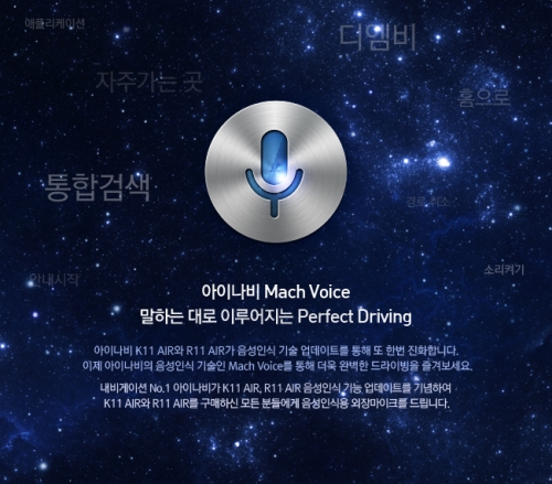 마하보이스 기능은 아이나비 K11 AIR와 아이나비 R11 AIR에서 업그레이드 이후 사용 가능하며, 아이나비가 무료로 제공하는 음성인식 버튼이 장착된 전용 마이크를 통해 기능을 제어할 수 있다.
