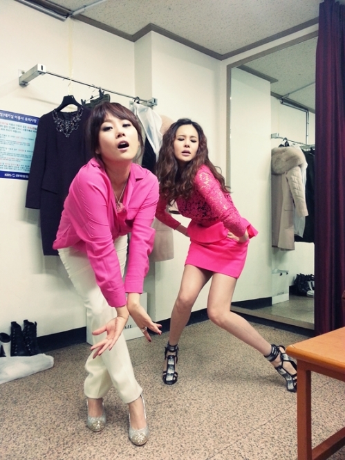 공개된 사진 속 아이비와 이수영은 핑크빛 의상을 입고 코믹한 포즈를 취하고 있다.