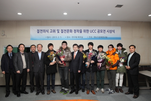 ▲에너지경제연구원 절전 UCC공모전 수상자들이 기념촬영을 하고 있다.