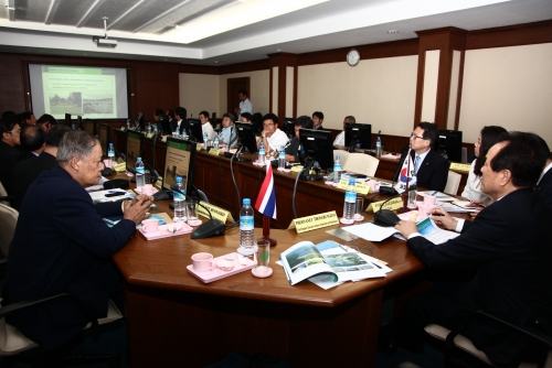 ▲박재순 사장(사진 오른쪽)이 지난달 21일 태국 왕립관개청이 주관한 기술교류세미나에 참석해 물관리사업 기술교류 및 협력방안에 논의하고 있다.