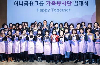 ‘하나금융그룹 가족봉사단은 임직원의 배우자(주부)들을 중심으로 거주지 단위별로 조직됐으며, 향후 주부의 강점을 살린 아동보육, 노약자 케어, 다문화가정 여성의 멘토활동 등 특화된 활동을 월 1회 이상 펼칠 예정이다.