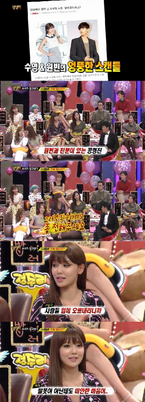 수영은 5일 방송된 SBS 예능프로그램 '강심장'에 출연해 원빈과의 스캔들에 대해 입을 열었다.