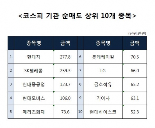 [코스피 기관 순매도 상위 10개 종목]