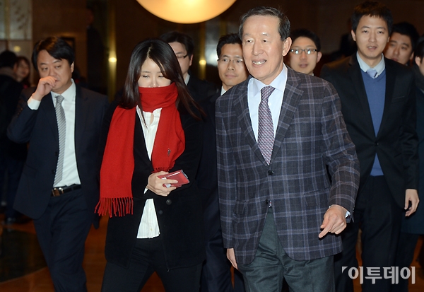 허창수 전경련 회장이 7일 오전 소공동 플라자호텔에서 열린 전경련 정기이사회에 참석하고 있다. 이날 열린 이사회에서는 허창수 회장과 정병철 부회장의 연임 여부를 논의할 예정이다.