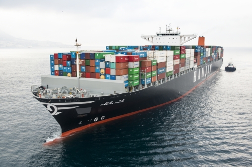 ▲한진해운이 운항 중인 국내 최대 컨테이너선(1만3100TEU급) 한진수호호 모습