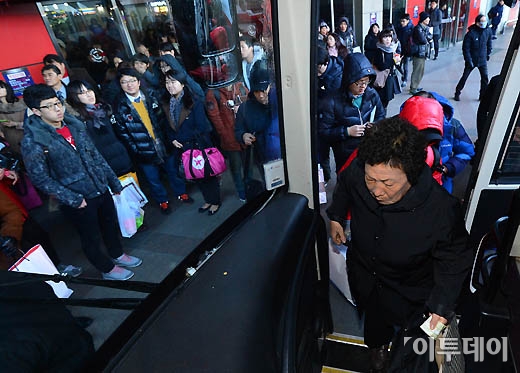 설 연휴를 하루 앞둔 8일 서울 강남 고속터미널 호남선이 귀성객들로 붐비고 있다. 한국도로공사는 설 연휴가 사흘에 불과해 전국 고속도로를 이용하는 하루 평균 교통량이 작년보다 8.7% 증가한 370만대에 달할 것으로 예측했다.