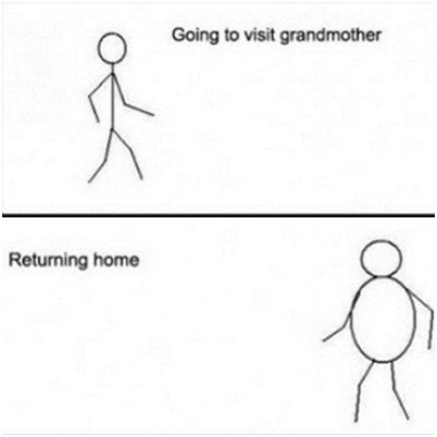 공개된 게시물은 할머니 집에 갈 때와 올 때의 차이를 간단한 그림으로 표현한 것이다. 할머니 집에 갈 때는 홀쭉했지만 명절이 끝나고 돌아올 때는 배가 빵빵하게 불어나 있다