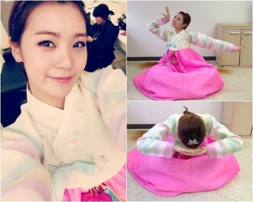 사진 속엔 리지가 한복을 차려 입고 마치 전통춤을 추는 듯한 포즈로 상큼한 매력을 뽐냈다.