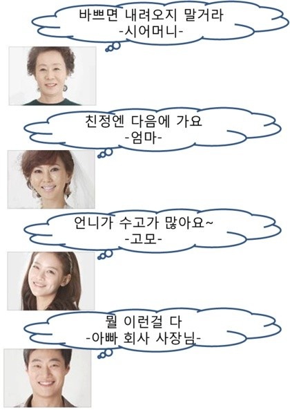 누리꾼들은 “정말 많이 들어본 말들이네”, “바쁘면 내려오지 말라면서 막상 안가면 역정내시는 시어머니” 등의 반응을 보였다.