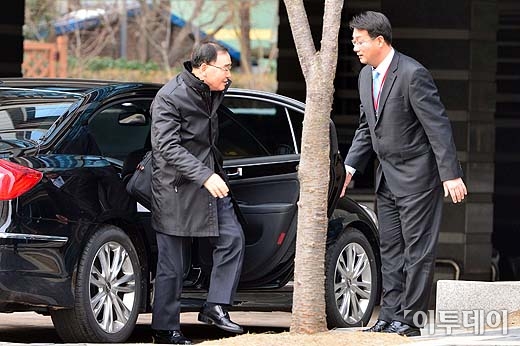 [포토]차에서 내리는 정홍원 국무총리 후보자