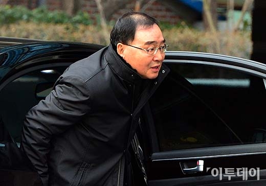 정홍원 국무총리 후보자가 12일 오전 서울 종로구 통의동 금융감독원 연수원 내 집무실로 출근하고 있다.