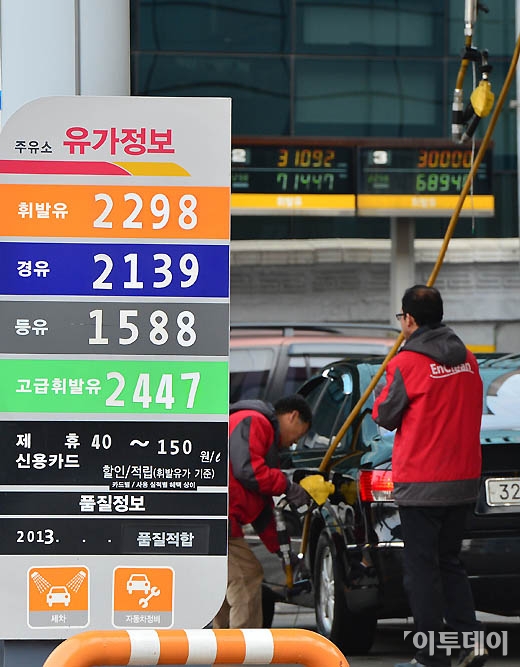 꾸준히 하락하던 기름값이 20주 만에 다시 상승세를 보인 가운데 12일 서울 한 주유소의 유가안내판에 휘발유 가격이 2298원을 가리키고 있다.