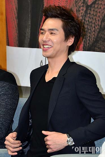 배우 김태훈이 13일 오후 서울 영등포구 여의도 KBS 신관에서 열린 KBS시트콤 '일말의 순정' 제작발표회에 참석해 취재진의 질문을 받고 있다.