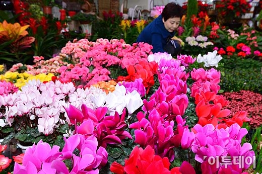 서울 낮 기온이 5도 까지 오르는 등 포근한 겨울 날씨를 보인 14일 오전 서울 서초구 양재동 화훼단지에 화사하게 핀 꽃 들이 손님을 기다리고 있다.