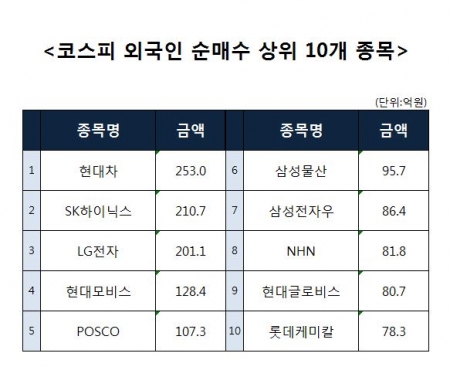 [코스피 외국인 순매수 상위 10개 종목]