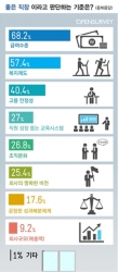 '좋은 직장 기준 1위’ 설문 조사에서는 응답자 10명 중 7명이 좋은 직장 기준 1위 요건로 급여 수준을 꼽았다. '복지제도’(57.4%)와 '고용안정성’(40.4%)이 뒤를 이었다.