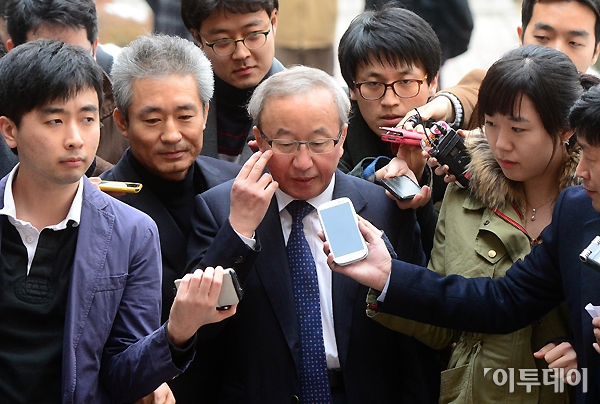 기획재정부 장관 겸 경제부총리에 내정된 현오석 한국개발연구원장이 17일 오후 서울 동대문구 한국개발연구원에서 기자회견을 가진 후 취재진의 질문에 답하며 이동하고 있다.