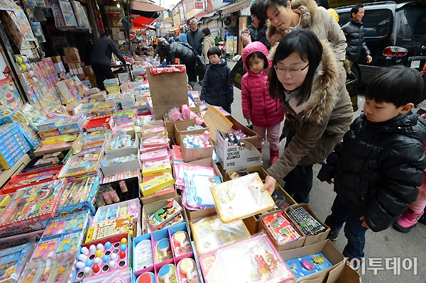 새학기를 앞두고 있는 17일 오후 서울 종로구 창신동에 있는 문구 전문시장을 찾은 어린이와 학부모들이 각종 학용품을 고르고 있다. 노진환 기자 myfixer@