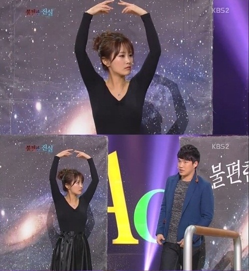 김지민은 17일 방송된 KBS 2TV '개그콘서트' 코너 '불편한 진실'에서 발레복을 입은 채 등장했다.