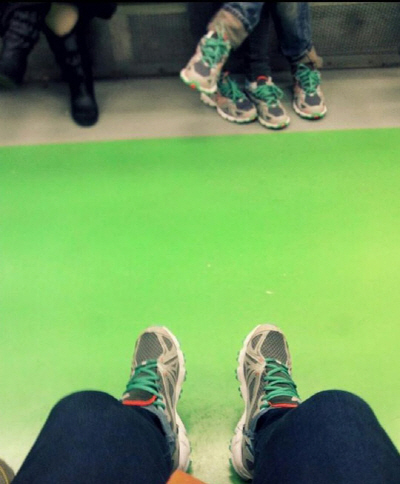 이 게시물에는 지하철에 앉아있는 사람들의 모습이 담겨 있다. 특히 솔로인 사람의 운동화와 맞은편에 앉은 한 커플의 운동화가 같은 디자인이라는 점이 보는 이들의 눈길을 사로잡고 있다.