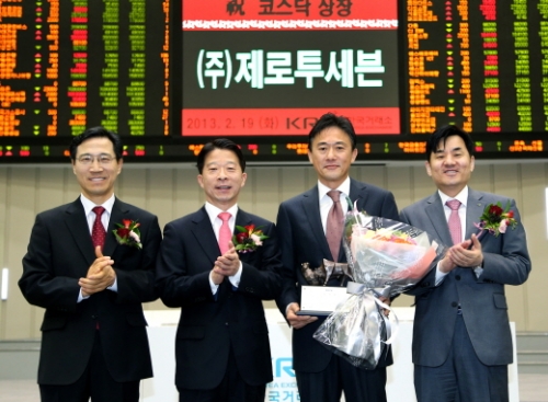 좌로부터 김원식 코스닥협회 부회장, 최홍식 한국거래소 코스닥시장본부장, 김정민 제로투세븐 대표이사, 윤경은 현대증권 대표이사.