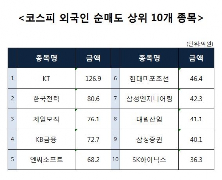 [코스피 외국인 순매도 상위 10개 종목]