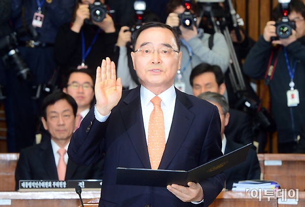 [포토]정홍원 국무총리 후보자 인사청문회, '선서'