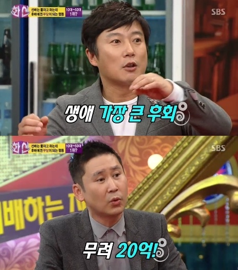 이수근은 “과거 정종철이 내게 좋은 주식 정보를 알려줬다. 그래서 거금 3000만원을 투자했는데 그 주식이 5백만원까지 떨어지더라. 정종철도 주식을 팔았길래 나 역시 빠르게 그 주식을 팔았다. 이후 난 살면서 가장 큰 후회를 했다. 갑자기 그 주식을 누군가 인수를 하더니 주식평가 이후 대폭 주식이 상승, 한 주당 350원 가량 했던 것이 1만6000원까지 오른 것이었다”고 말했다.
