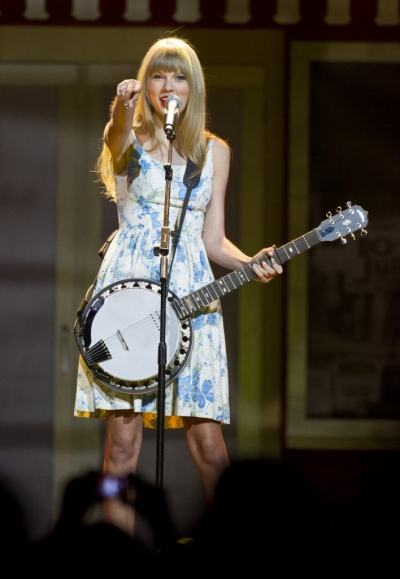 ▲미국 팝스타 테일러 스위프트가 공연 계약금 반환에 대해 피소 당했다. 사진은 지난해 6월 미국 노스캐롤라이나주 파이에트빌의 월마트 스토어 정기 공연에서 스위프트가 노래하는 모습. 블룸버그