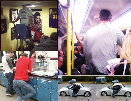공개된 사진에는 운동기구를 이용하기 위해 천장에 구멍을 뚫은 사람, 버스를 이용하며 머리가 버스 천장에 닿은 사람, 옆 사람과 대화하기 위해 불편한 자세로 기대있는 사람, 소형차에 탑승하기 위해 몸을 구겨서 억지로 넣는 사람의 모습 등이 담겨 있다.