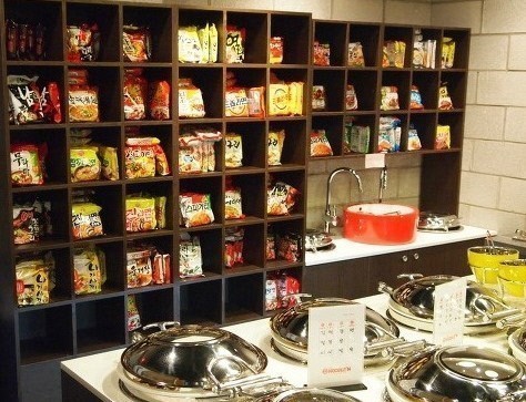 이 곳은 1인당 7000원의 이용료를 내고 들어가면 다양한 종류의 라면은 물론 개인 취향에 따라 각종 토핑을 골라 넣어 나만의 라면을 만들어 먹을 수 있다. 이와 함께 무제한 이용 가능 한 샐러드바도 있다.