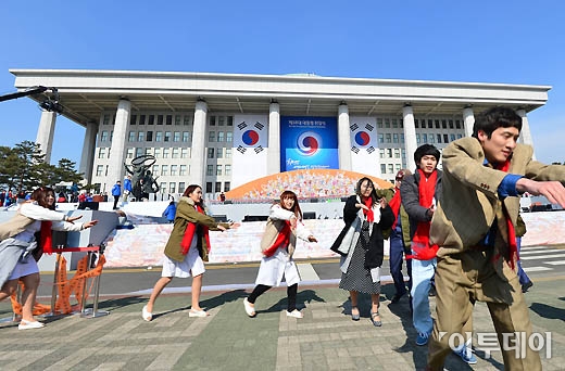 제18대 대통령 취임식을 하루 앞둔 24일 서울 여의도 국회의사당에서 취임식 최종 리허설이 열리고 있다.