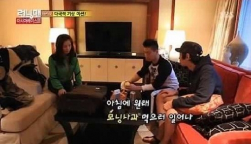 이광수는 개리에게 "왜 이렇게 일찍 일어났냐"며 물었고 이에 개리는 "난 원래 모닝사과 먹으러 일찍 일어난다"고 대답해 시청자들의 웃음보를 자극했다.