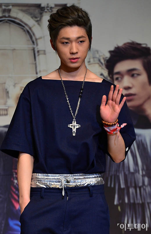 그룹 틴탑의 창조가 26일 서울 서교동 인터파크 아트홀에서 정규 1집앨범 '넘버원' 쇼케이스에서 포즈를 취하고 있다.