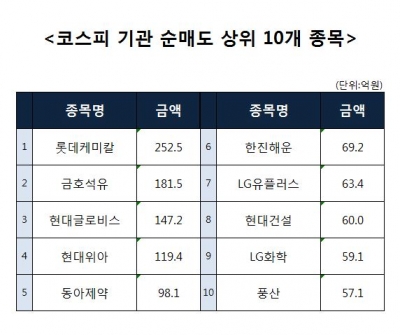 [코스피 기관 순매도 상위 10개 종목]