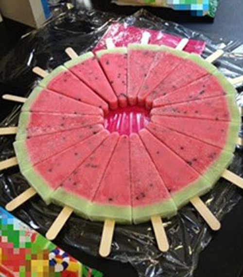 최근 한 온라인 커뮤니티 게시판에는 '원형 수박 아이스크림'이라는 제목으로 사진이 올라왔다. 공개된 사진에는 수박 모양의 아이스크림을 동그란 모양으로 배치한 모습이 담겨 있다. 마치 거대한 수박을 연상케 해 보는 이들의 웃음을 자아낸다.