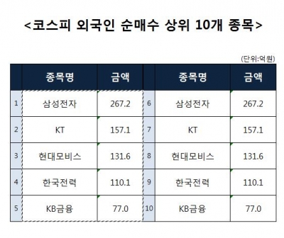 [코스피 외국인 순매수 상위 10개 종목]